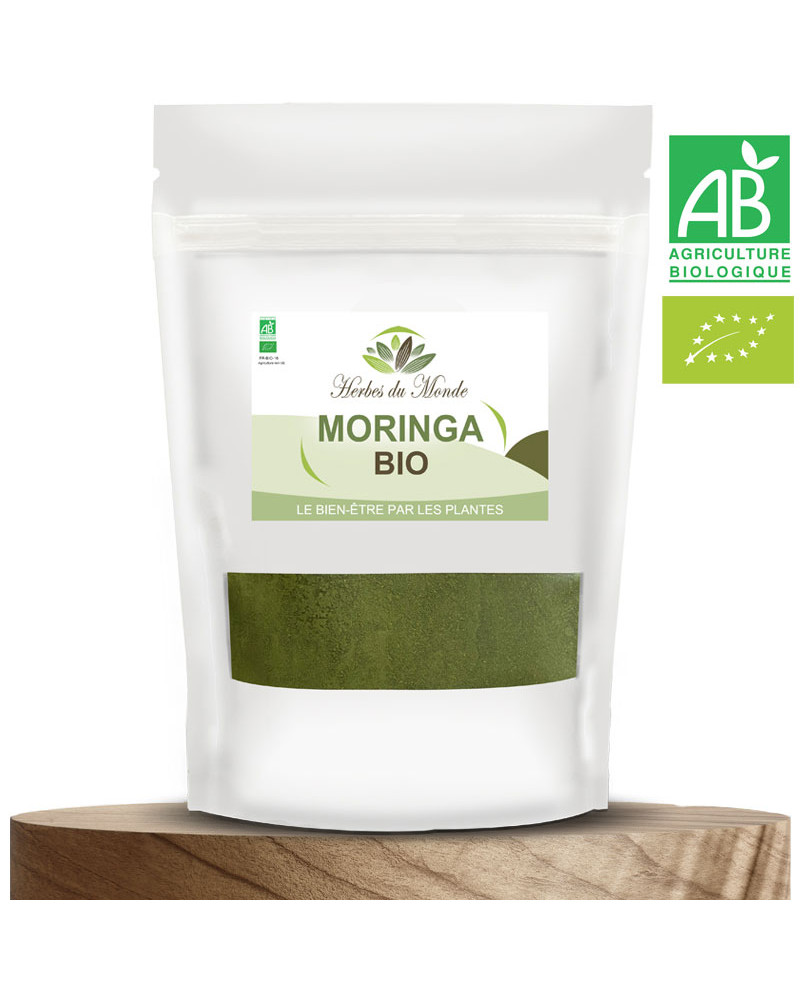 PrésentationLe Moringa est une véritable richesse pour les pays du Sud depuis la découverte du potentiel nutritionnel de ses feuilles. L’utilisation de ses feuilles est de plus en plus fréquente pour lutter contre la malnutrition. Celle-ci sont utilisées sous forme de poudre séchée depuis une trentaine d’années pour lutter contre les carences alimentaires en Afrique. Véritable allié contre la fatigue, le Moringa réduit également les carences en vitamines, en fer et en calcium.