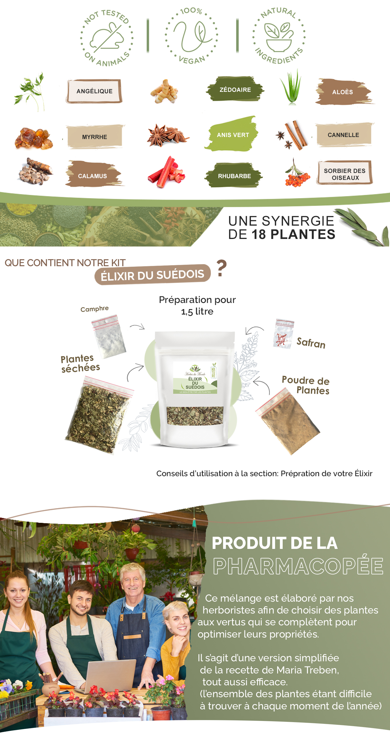 L’Élixir du Suédois est à utiliser à titre préventif et curatif, il ne s’agit pas d’un médicament.